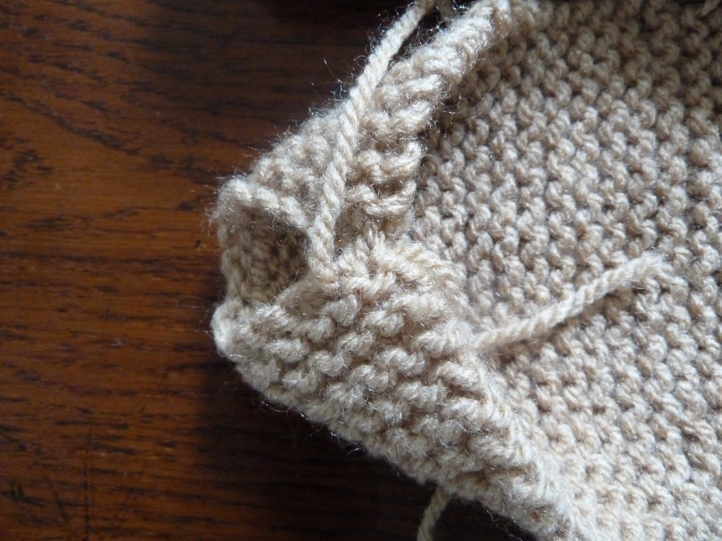 - Voor de oortjes 2 lapjes breien. Per lapje 8 steken opzetten en 20 pennen recht breien (dit zijn 10 ribbels).