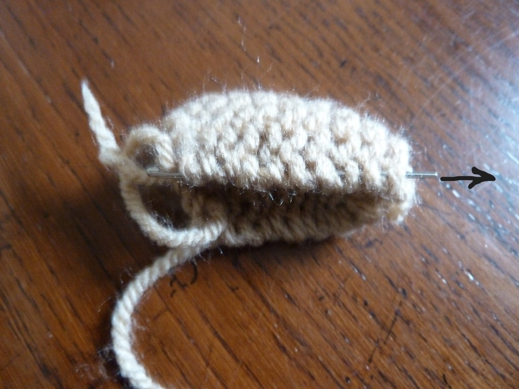 - Voor het staartje en de snuit worden 2 lapjes gebreid. Per lapje worden 8 steken opgezet en 16 pennen recht gebreid (dit zijn 8 ribbels).