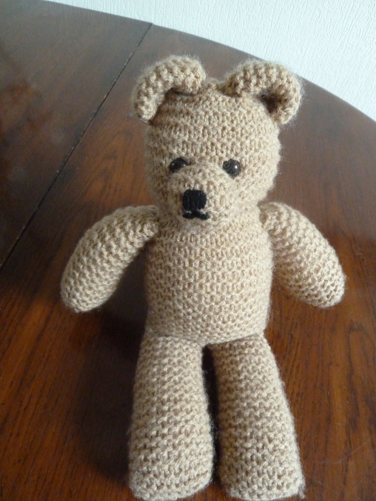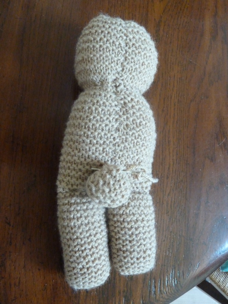 Als alle lapjes gebreid zijn, kunnen we de beer in elkaar zetten.